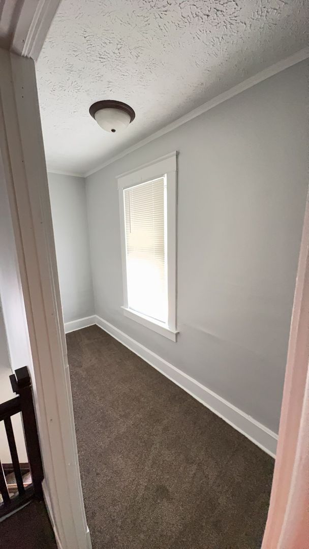 Recently renovated and move-in ready! This spacious 1,000 sq. ft. upstairs duplex features brand new carpet and fresh paint throughout, central air, and includes a fridge and stove. Street parking available.